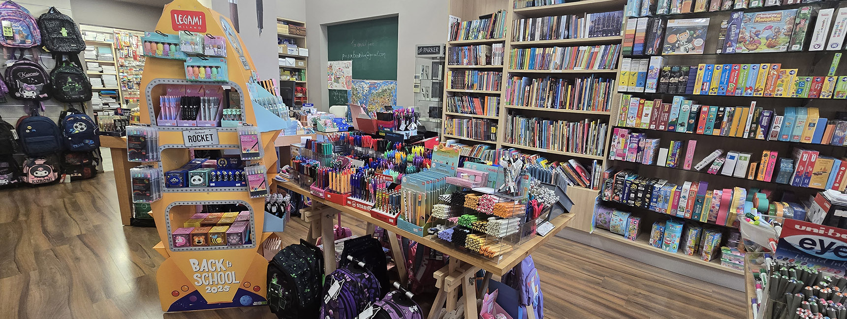 Στο Βιβλιοπωλείο μας θα βρείτε όλα τα Ελληνικά και Ξενόγλωσσα Σχολικά Βιβλία, Σχολικές τσάντες, Χαρτικά και ότι χρειάζονται οι μαθητές.